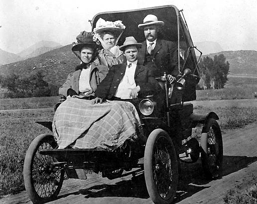 A ride in this car was an adventurous journey. In the first place, you didn’t just get in, step on the starter and roll away. First of all, the car had to be pushed out of the shed into the back yard, usually with the help of half a dozen of us boys. Chester didn’t have to help; he was boss. In the daylight, the car, at first glance, looked something like a baby buggy. It had lovely carving dashboards at the front and back. The seats for four passengers were exactly in the middle of the car. Those in the front seat looked forward and those in the back seat saw the scenery receding in the distance.