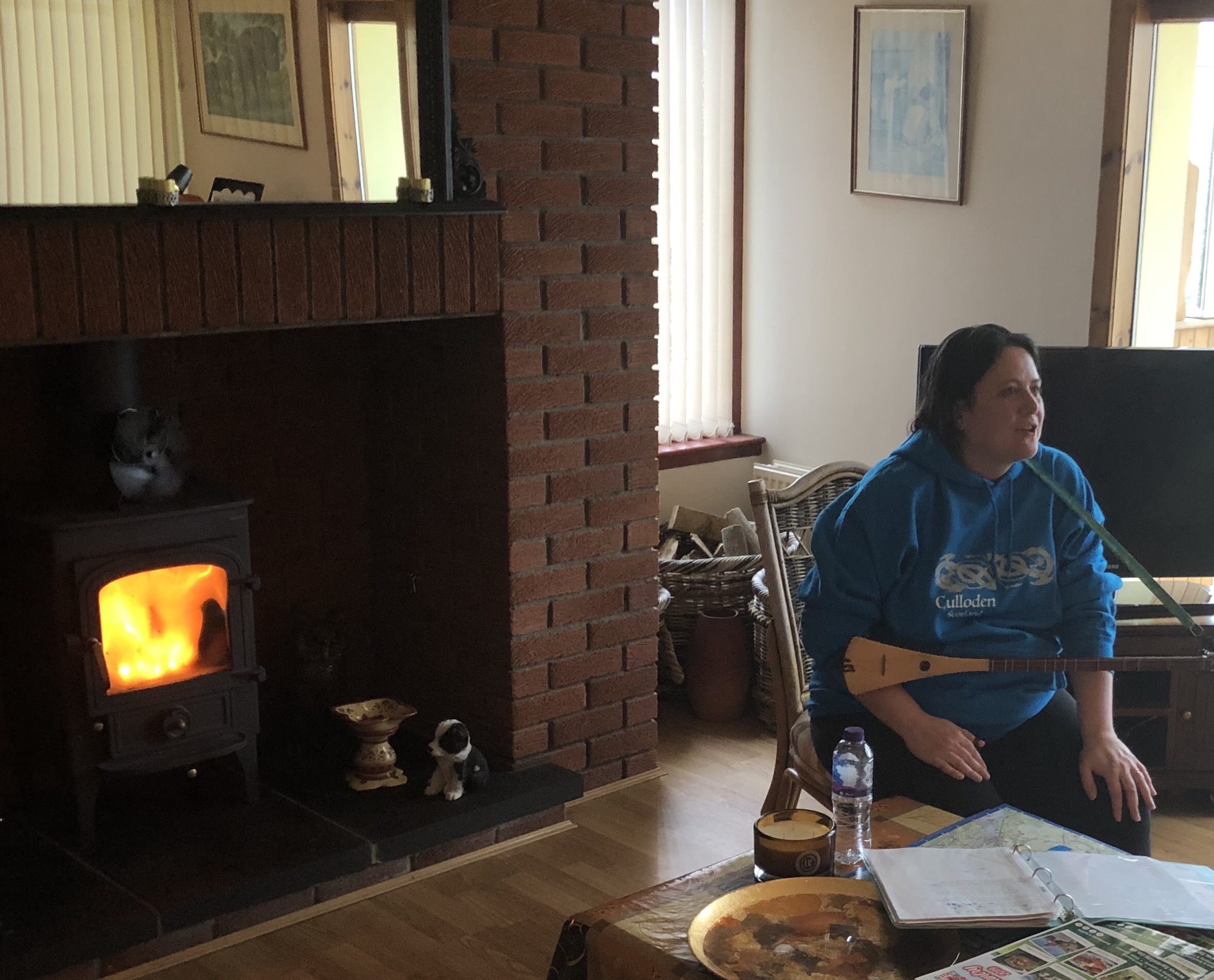 After warming up, drying off, and enjoying a wee dram at Leanach Farms, a working sheep farm and B&B, I gave a welcome home concert for the father of our host (He had just come home after a lengthy stay in the hospital).