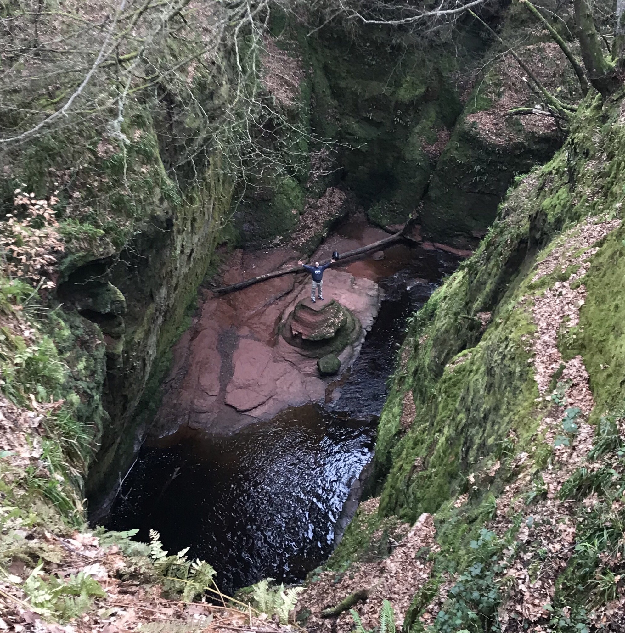 We also found a unique bit of Scotland, The Devil’s Pulpit. The name refers to a particular stone that usually remains uncovered as the stream runs through Finnich Gorge. The name may also refer to the eerily red tinted water (the effects of the red sandstone).