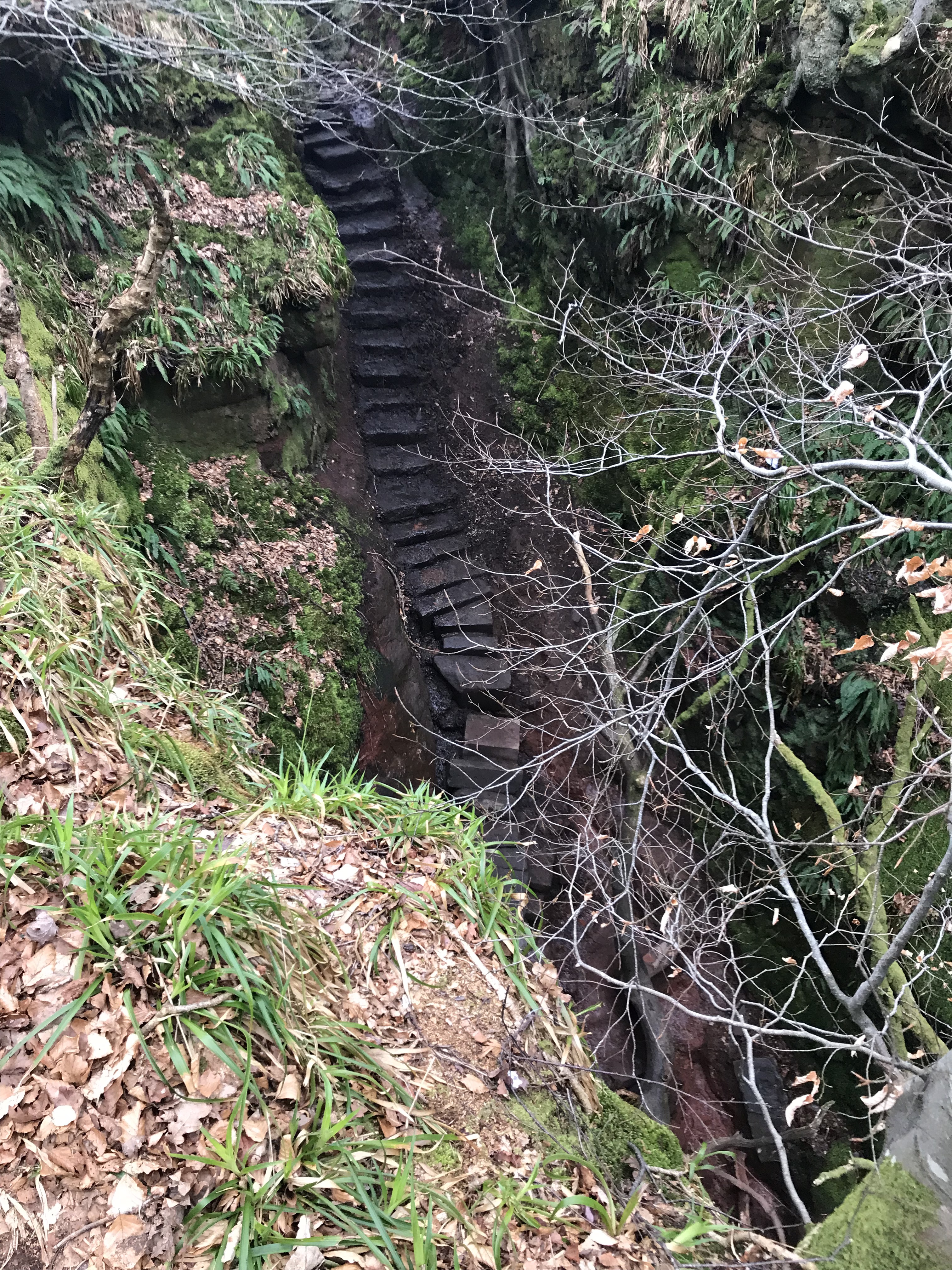 To explore the gorge, travelers must descend steep, slippery steps (with no hand rail). Chad braved the mossy, overgrown descent and was rewarded by spectacular views. I, on the other hand, have enough trouble balancing on flat, dry land and opted to take pictures from above.