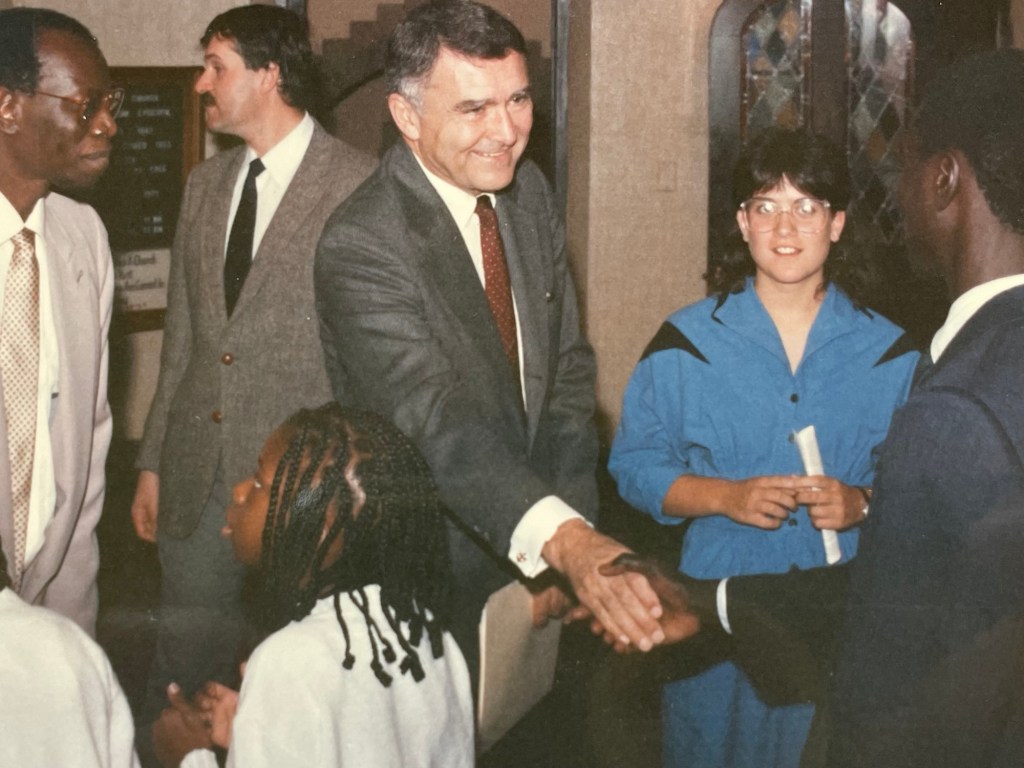 I remember that lovely drive. In the days before the modern treadmill of entertainment, we enjoyed the beautiful countryside along US-12, looking for dinosaurs in the Irish Hills. My father was speaking at the Mariners’ Church of Detroit. What made this day so memorable? Perhaps it was because we all had a job and a purpose on these road trips. My sister, Muriel, would entertain the children, where my little brother, Jacob, would join the fun. My mother shared her jovial, French-Canadian spirit, leaving a lasting first impression with those she met. I was more of a floater, wandering back to the kitchen area and helping the staff or sitting next to the unhappiest curmudgeon and striking up a conversation. I always considered the event a success if I could get the latter to laugh. My father crafted a message that brought people together, inspiring groups to put aside their differences and unite for a common cause, the right to educate without government interference.